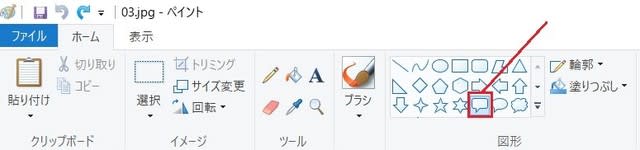 2. ペイントソフトの上部に図形のツールがありますので、これを使います。