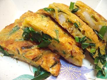 チヂミ ~おもち入りです。これも時々登場しますね~ 小さいので二枚作ります。
