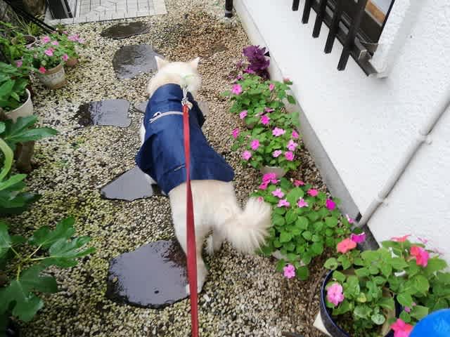 きらちゃんのお散歩のカッパ姿はもう少しで終わり。
