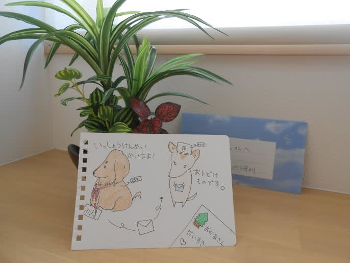 ポッキーの絵手紙も一緒に飾りましょうね。