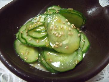 きゅうりは塩で少し揉んでから酢味噌と胡麻を振りかけました。